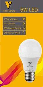 Base: E27, Colour Temperature: 3000 K, Lumens: 425 LmColour of the Light: Yellow, Product Colour: WhiteMaterial: PolycarbonateWattage: 5 Watts, Voltage: 200 Volt - 240 VoltItem Dimensions (L x B x H): 6.5 cm x 6.5 cm x 12.5 cmPackage Contents: 1 LED BulbWarranty: 2 YearsKey Feature: High Lumens Output (100 Lumens per Watt) |
