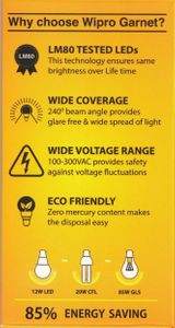 Wipro Garnet 12W 1100L B22 LED Bulb (Yellow) Specifications