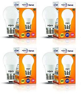 Wipro Garnet 3W E27 LED Bulb (Yellow, Pack of 4)