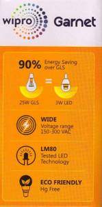 Wipro Garnet 3W Standard E14 270L LED Bulb (White,Pack Of 2) Specifications