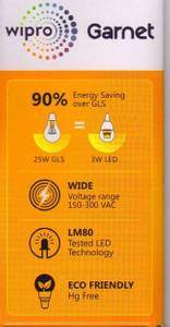 Wipro Garnet 3W Standard E14 270L LED Bulb (Yellow,Pack Of 4) Specifications