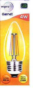 • Wipro Garnet 4W Candle E27 Filament LED Bulb (Yellow, Pack of 2)