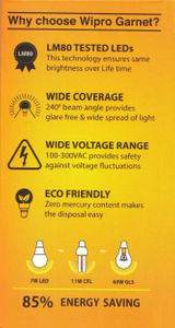 Wipro Garnet 7W B22 LED Bulb (Yellow, Pack Of 4) Specifications