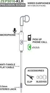 ZAZZ ZEP3016-KLR Precision Sound Earphones Specifications