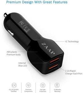| Model | 2- Port Car Charger (Premium 3.1 A/10W 2Port USB Charger ) Award winning design-Autozone-USA, Fast Charging ports. |
