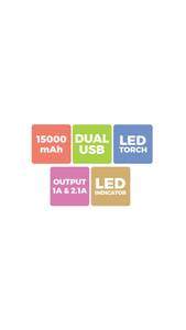 Zebronics MC-15000 15000mAh Power Bank With Torch Specifications